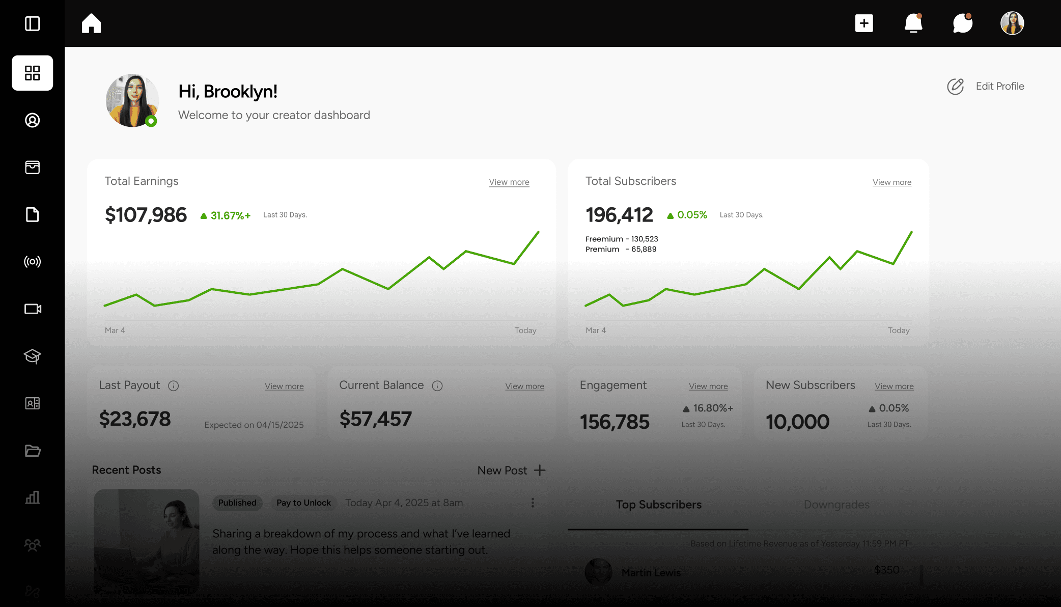 A clean, modern interface creators trust
